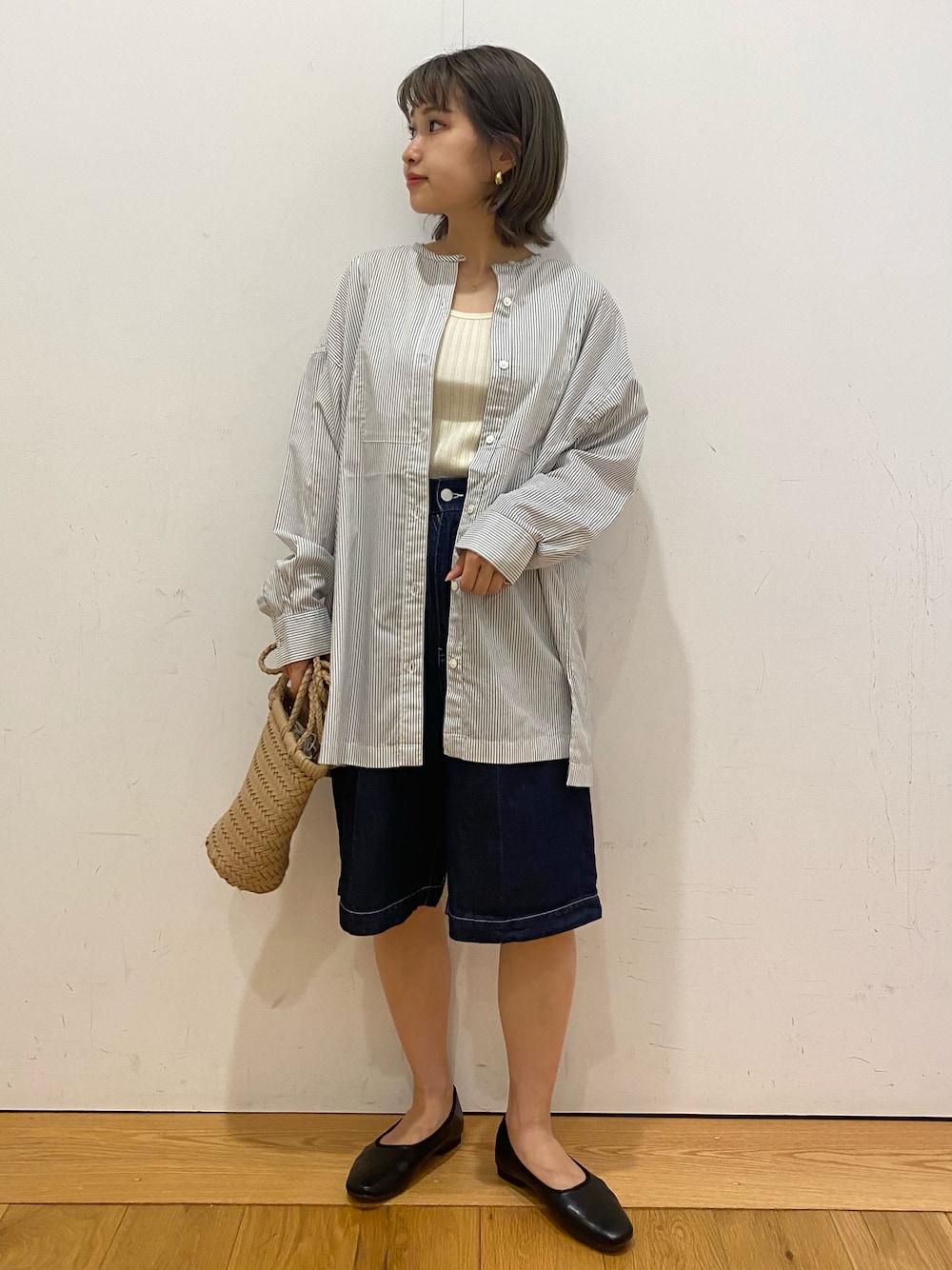 シャツ×ハーフデニムパンツで 大人のカジュアルコーデです! ストライプが爽やか♪
