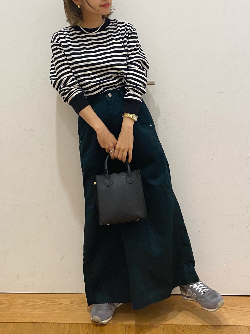 カジュアルコーデです! ボーダーTは袖や首元の切り替えがアクセントになってて可愛いです🥺 2サイズあるのですが私はインナーにもしやすい1のサイズでコンパクトに着たいです♪