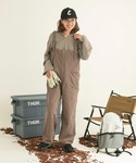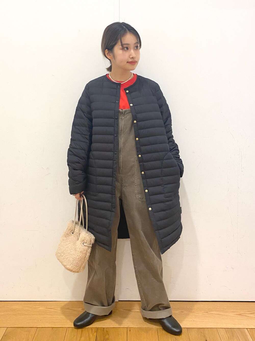 朱色のニットをアクセントに、 大人のサロペットコーデです🍅