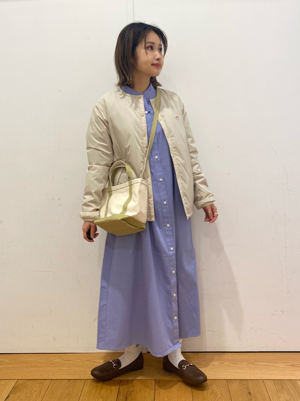 春のワンピースコーデ👗です! dantonのノーカラージャケットは 薄手ながらも保温性もしっかりとあり、 長いシーズン着用いただけます!