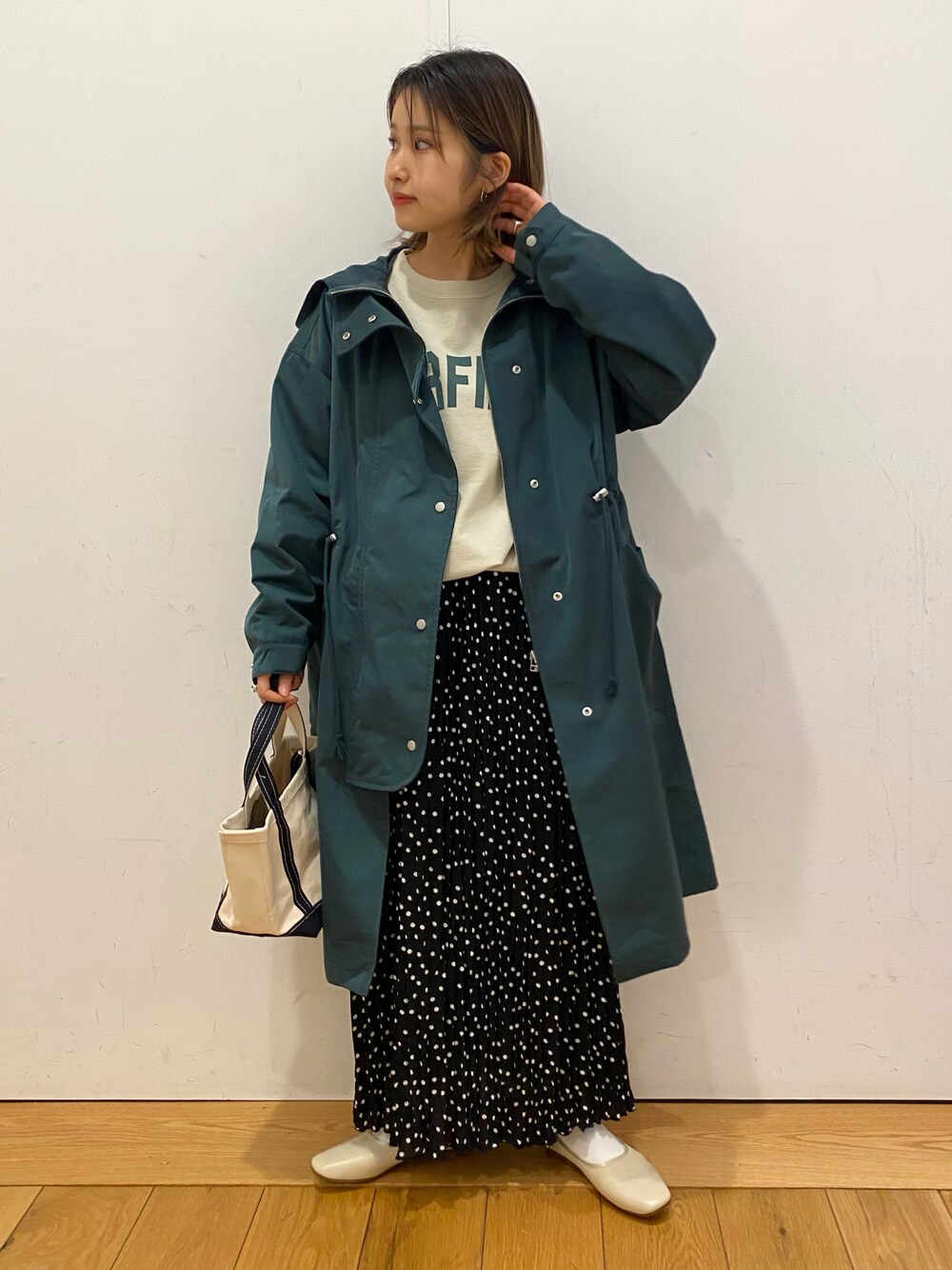 ミリタリーコートは 少し春先取りのアイテム🤏💚 光沢感があり、カジュアルすぎないのがポイントです◎