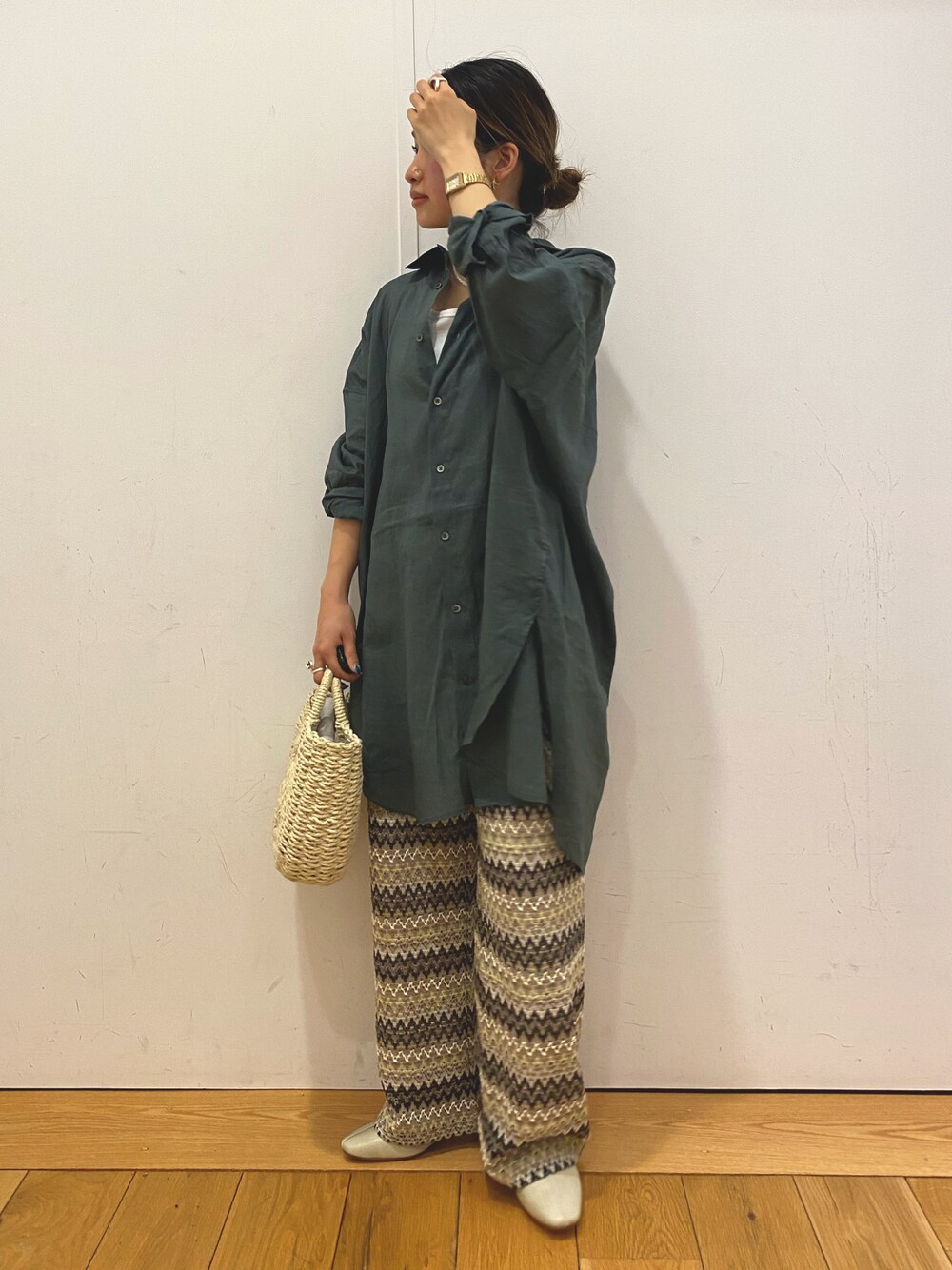 emari(URBAN RESEARCH ROSSO)のハンドバッグ「ラウンドハンドルかごバッグ」を使ったコーディネート