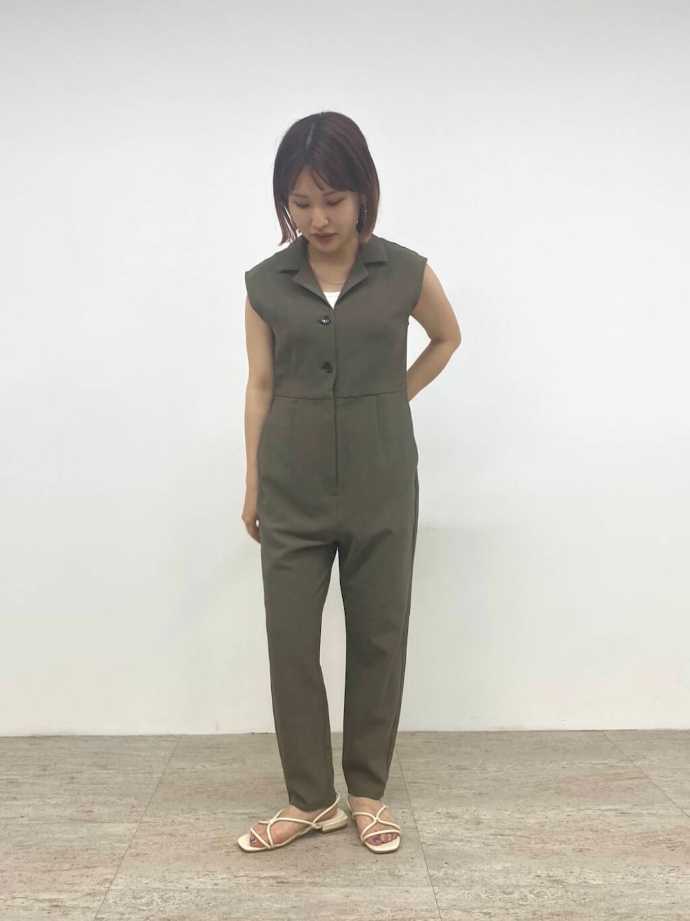 夏に快適な機能が備わったオールインワン。 ドライタッチで涼しくお召しいただけます! これ一枚でコーデが完成するので 忙しい朝にも重宝します^_^ 34のサイズだと、小柄な方でも フラットなサンダルも合わせやすいです! 裾ももたつかず、すっきりと履けます^_^