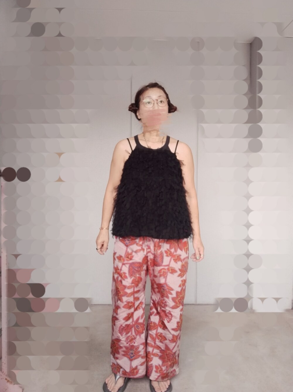 こんばんは。 今日は、暑さもほどほど、過ごしやすかった。 ゆったり過ごしました。 もじゃもじゃキャミソールと、銘仙の着物から作ったパンツをはきました。 連休は嬉しい。 今夜も、楽しみまーす\(^o^)/