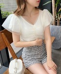 emaのニット/セーター「チュールがけフレアスリーブニット」を使ったコーディネート