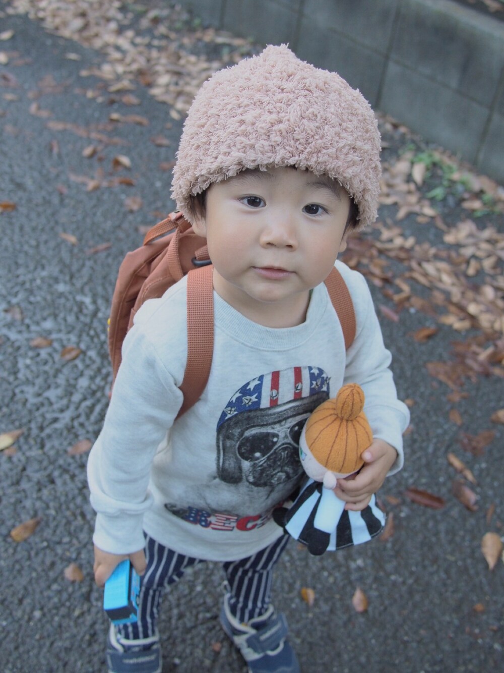 モケニット風の帽子新しくハンドメイドしたよー♡♡ 早速かぶってお散歩❤︎