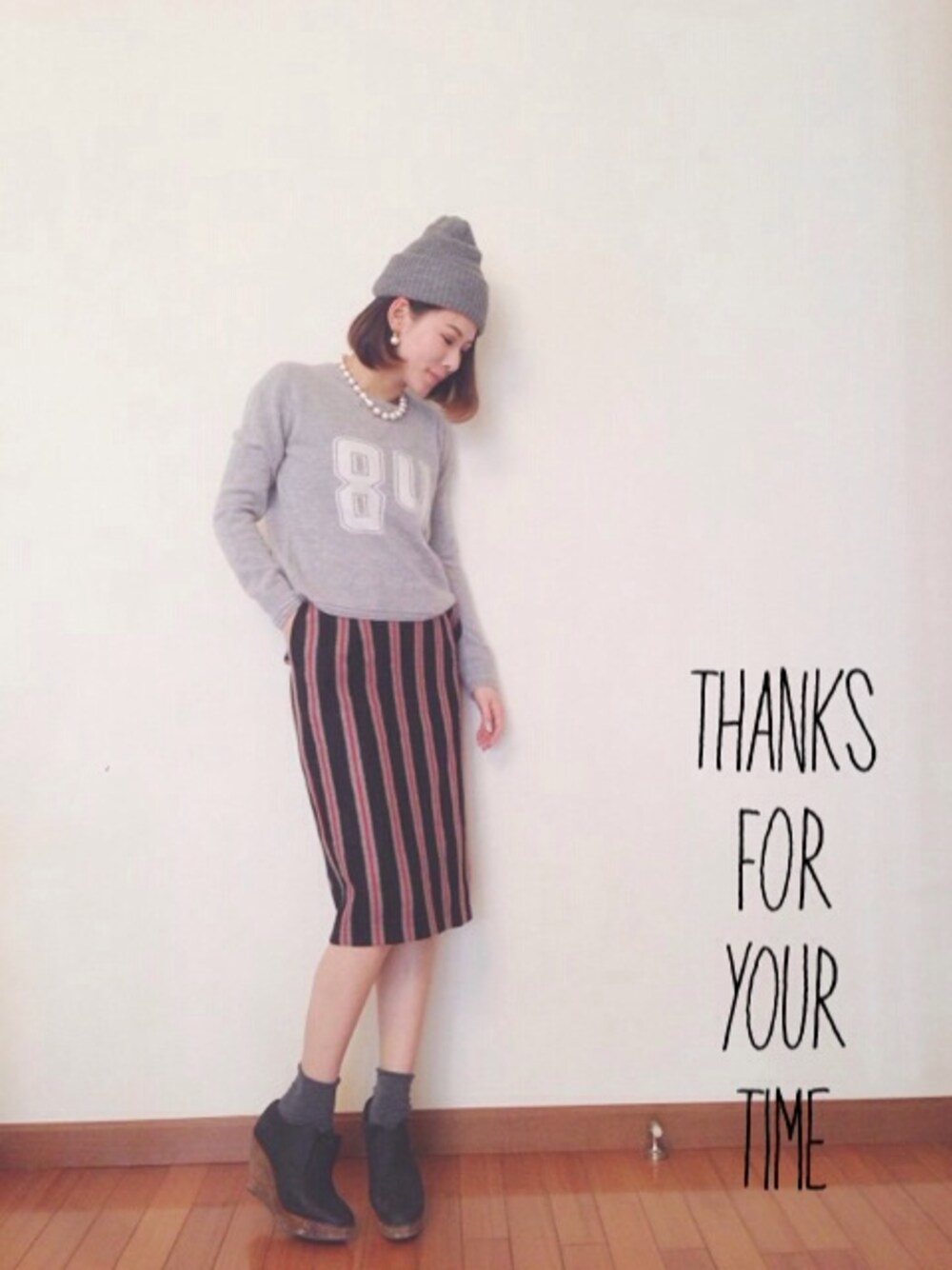 emaemiのニット/セーター「□Ray BEAMS / “84”ナンバープルオーバー」を使ったコーディネート