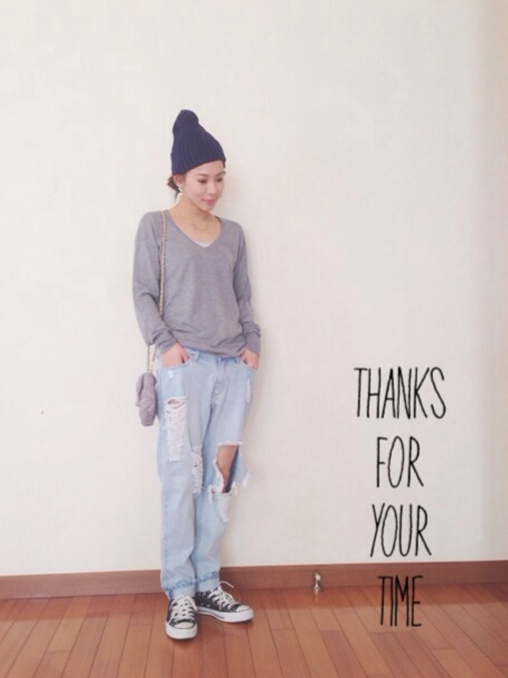 ニット: BEAUTY & YOUTH スニーカー: converse ハードなダメージデニムでシンプルコーデ☻♡ ダボダボ〜