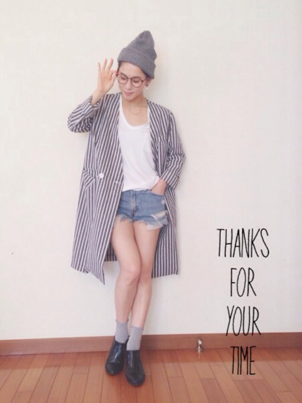 デニムパンツ: used メガネ: BEAMS