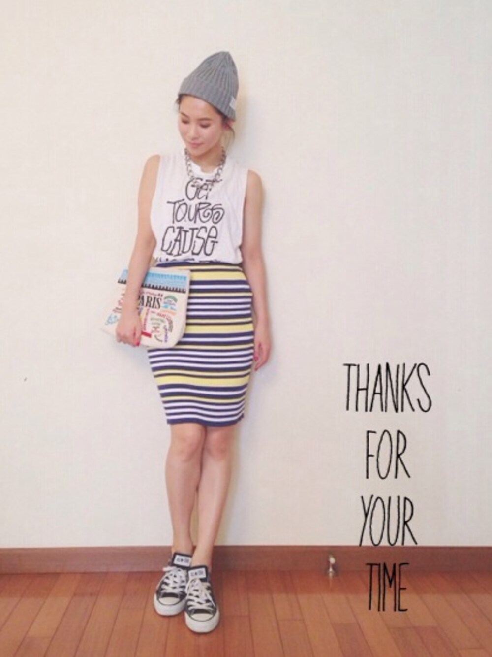 トップス: stussy ニット帽: BEAMS チェーンネックレス: stunning lure 夏色スカート☻♡