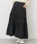 earth music&ecology official(earth music&ecology)のスカート「デニムアシンメトリーティアードスカート」を使ったコーディネート
