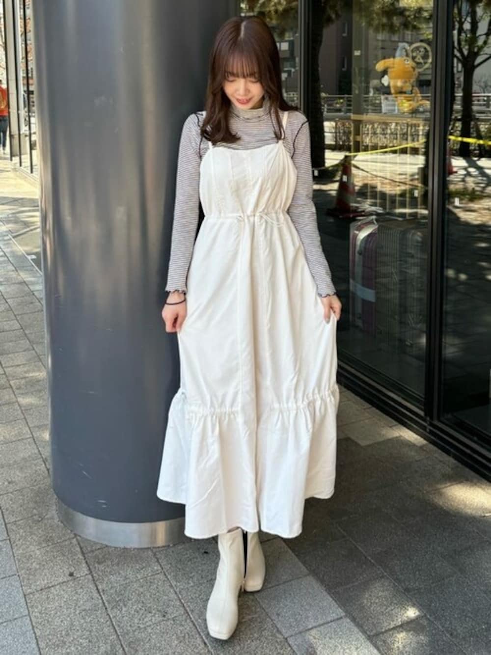 earth music&ecology official(earth music&ecology)のワンピース「ドロストキャミワンピース」を使ったコーディネート