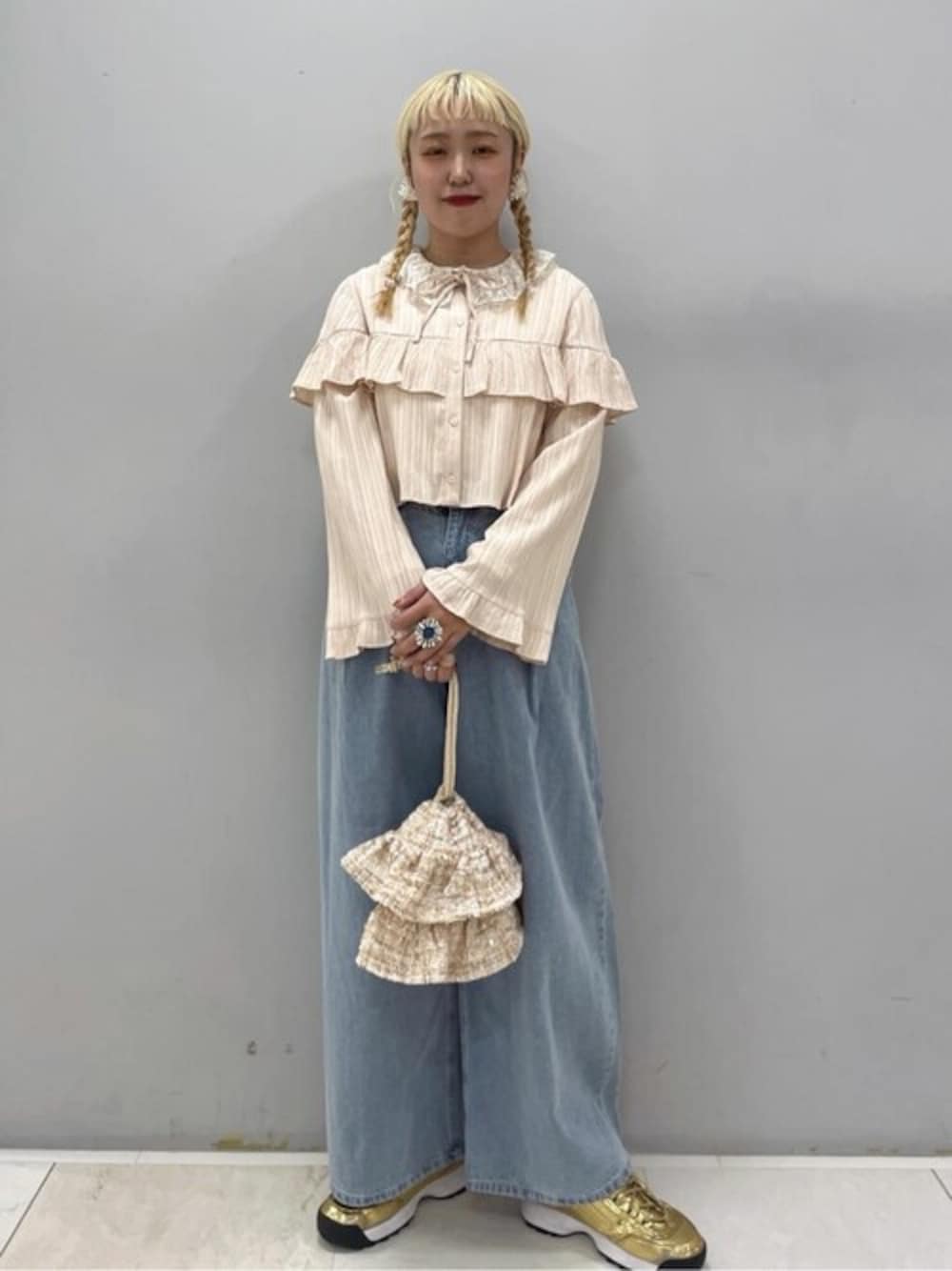 earth music&ecology official(earth music&ecology)のシャツ/ブラウス「フリル切替えショートブラウス」を使ったコーディネート