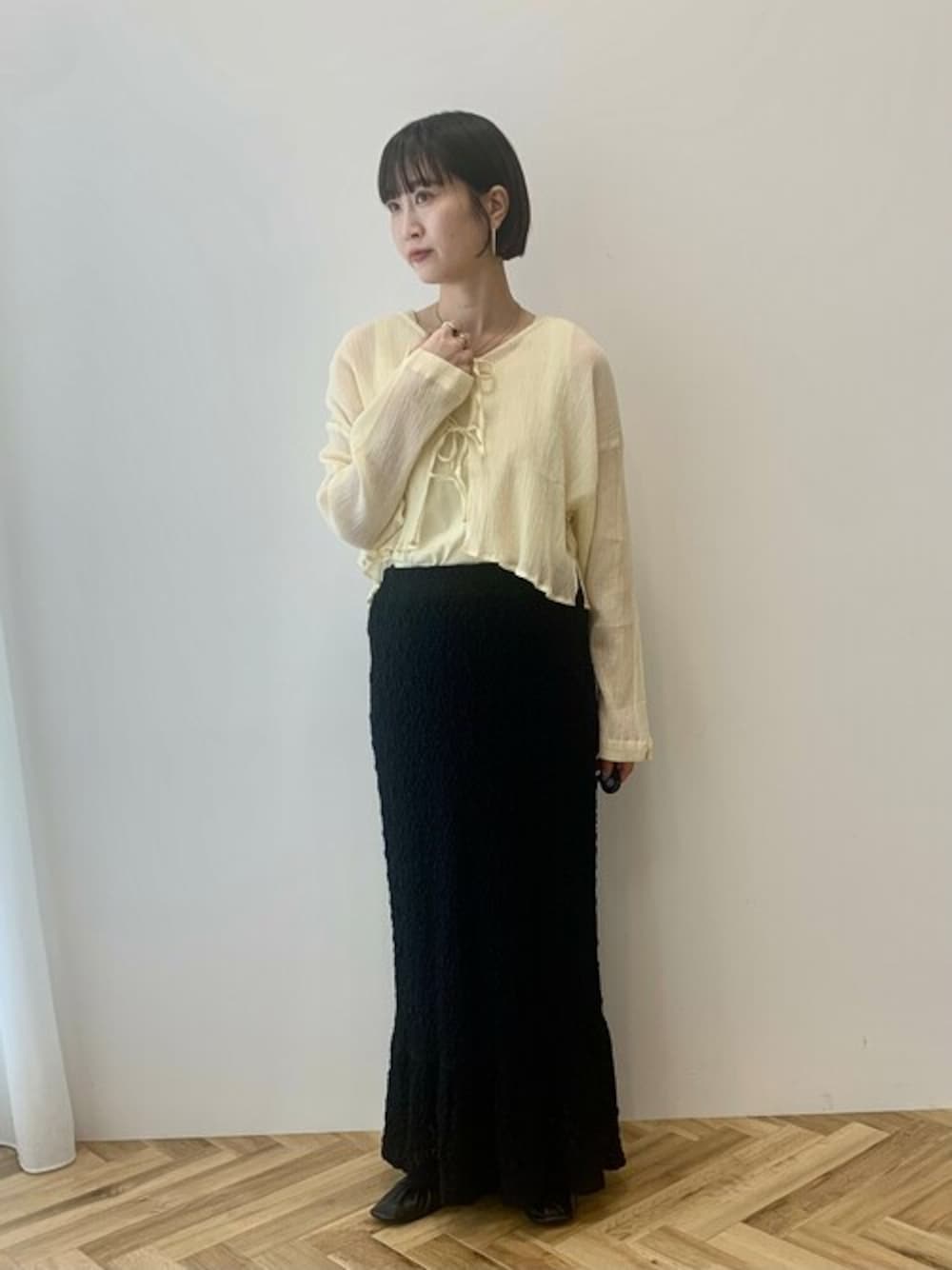 earth music&ecology official(earth music&ecology)のシャツ/ブラウス「SET2点クレープリボンブラウス+インナー」を使ったコーディネート