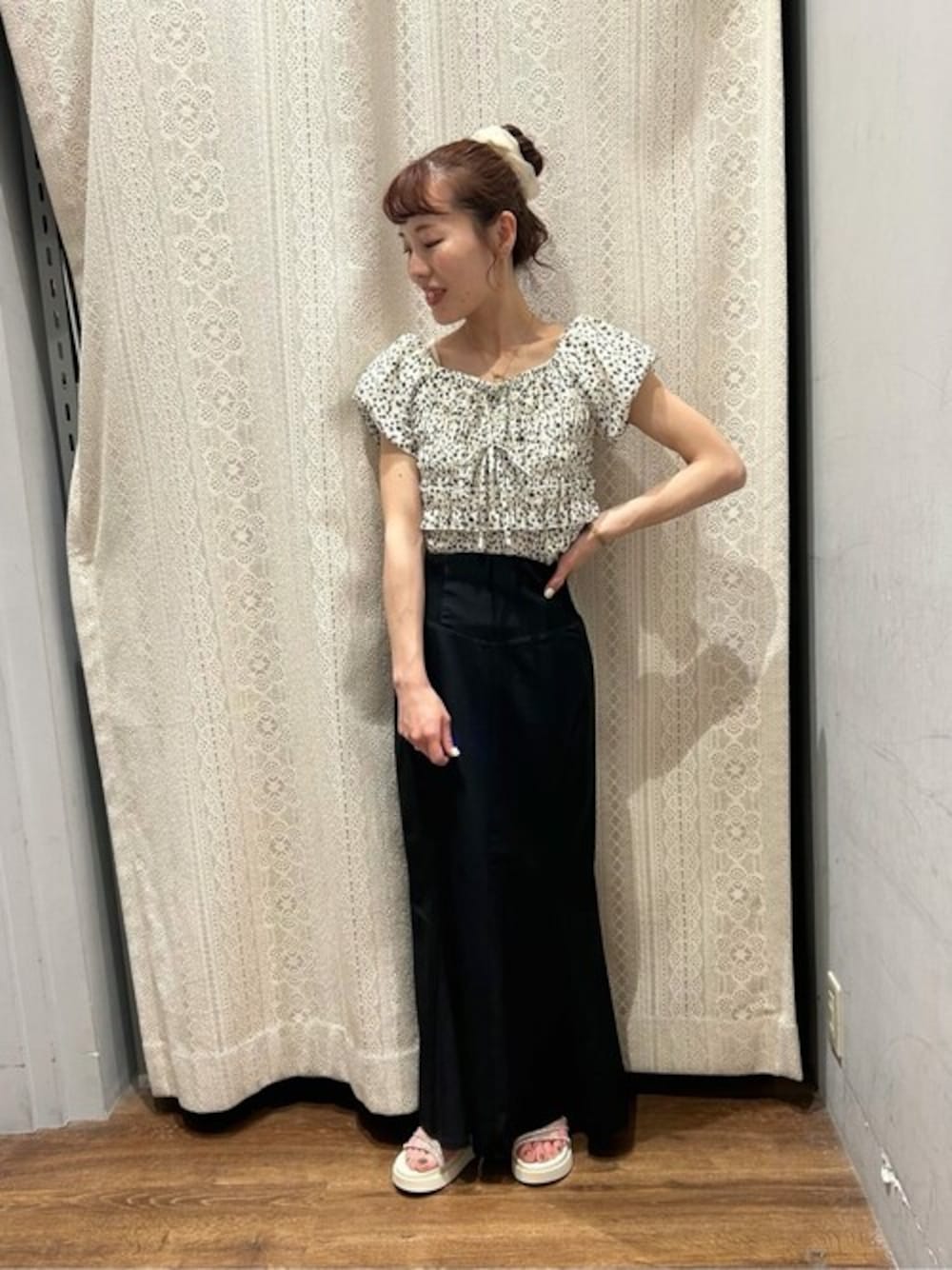 earth music&ecology official(earth music&ecology)のシャツ/ブラウス「フレンチバルーンフリルブラウス」を使ったコーディネート