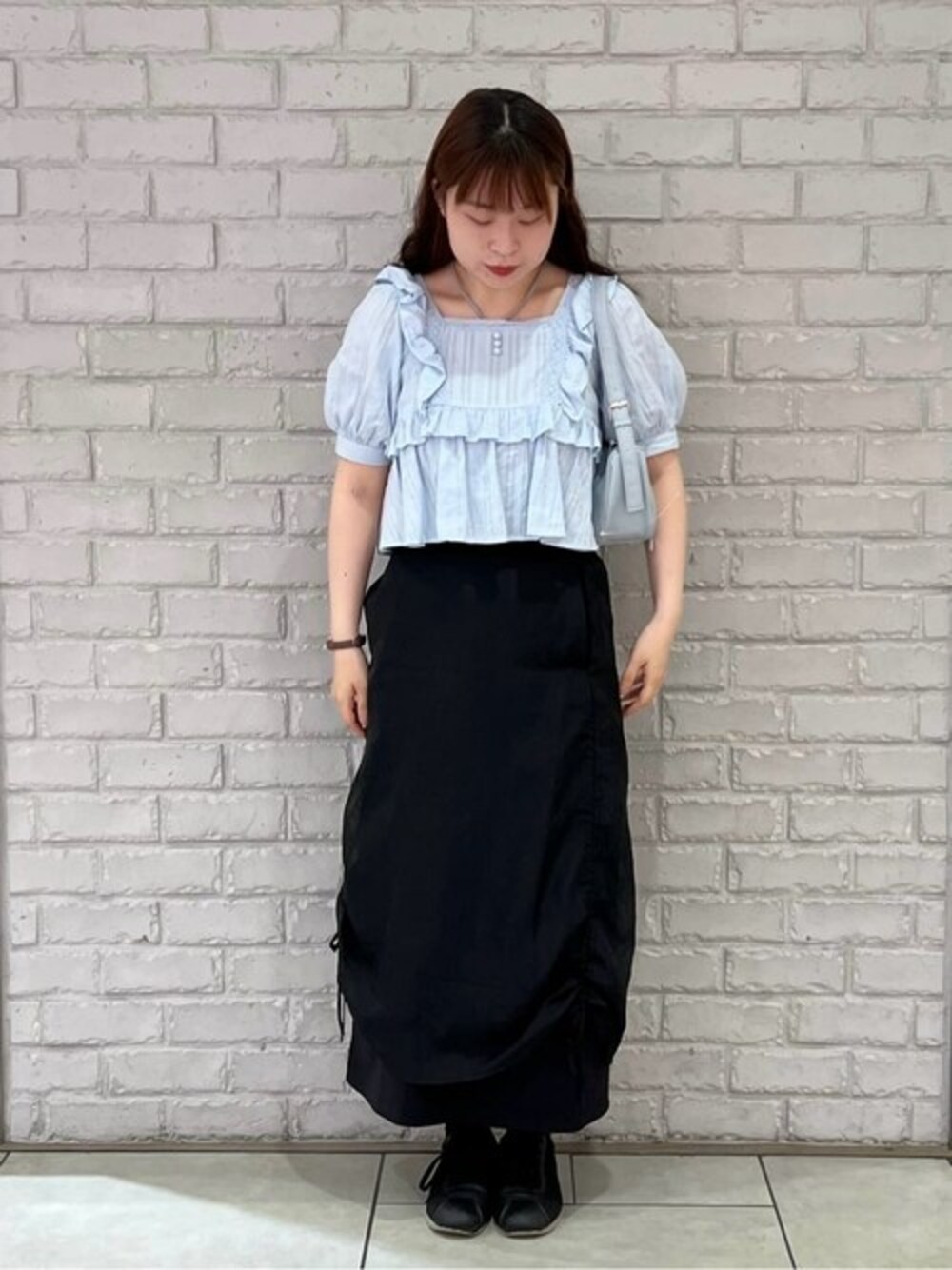 earth music&ecology official(earth music&ecology)のシャツ/ブラウス「パフスリーブコットンフリルブラウス」を使ったコーディネート
