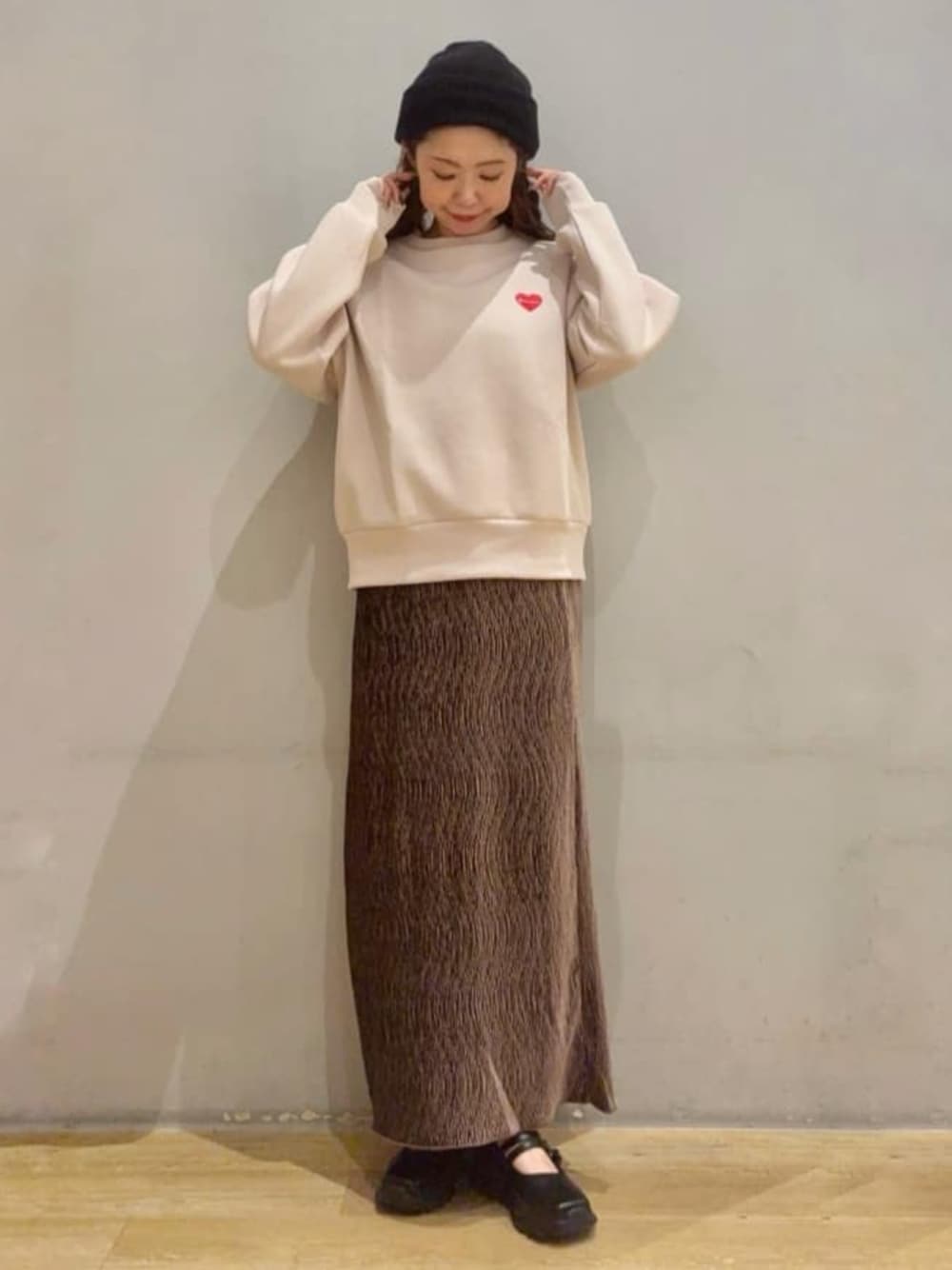 earth music&ecology official(earth music&ecology)のスウェット「Champion×emaeポンチハートスウェット」を使ったコーディネート