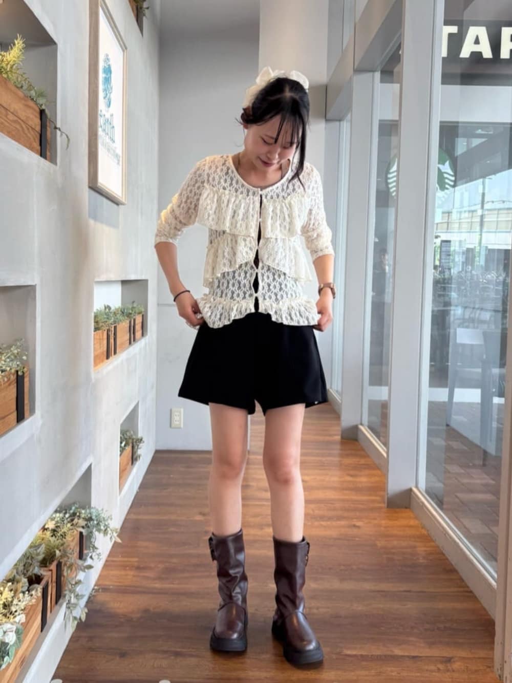 earth music&ecology official(earth music&ecology)のシャツ/ブラウス「レースフリルメローカーディガン」を使ったコーディネート