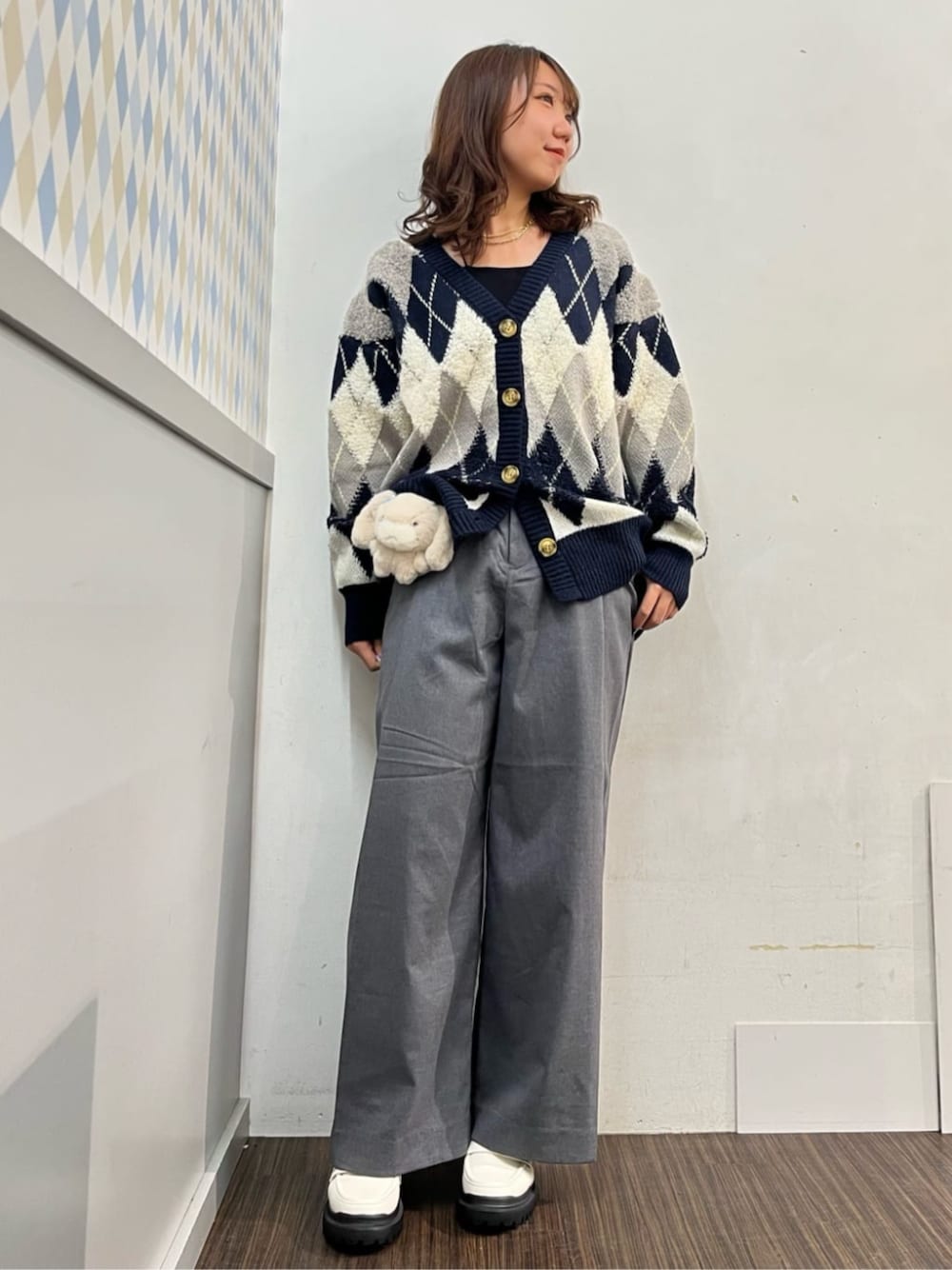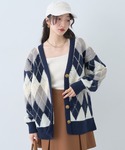 earth music&ecology official(earth music&ecology)のカーディガン/ボレロ「ループ編みアーガイルカーディガン」を使ったコーディネート