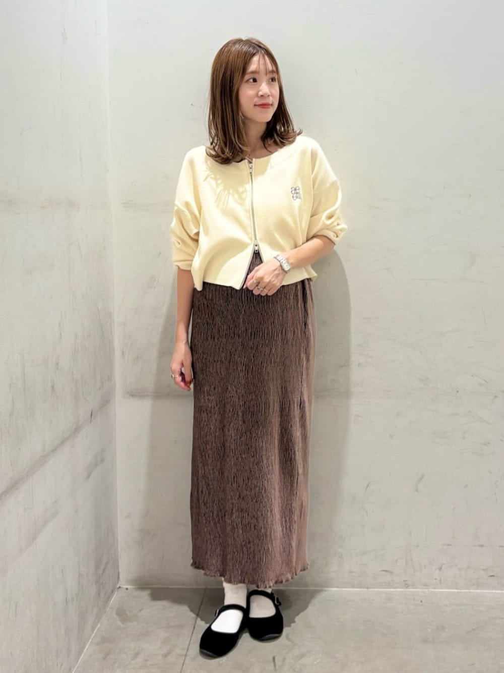 earth music&ecology official(earth music&ecology)のスカート「シャイニーベロアスカート」を使ったコーディネート
