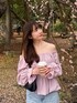 earth music&ecology official(earth music&ecology)のシャツ/ブラウス「バルーンヘムブラウス」を使ったコーディネート
