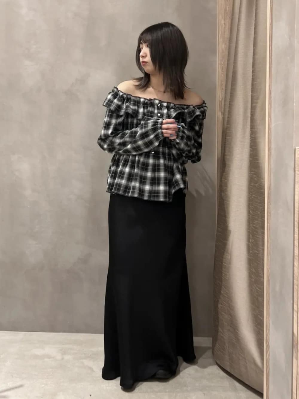 earth music&ecology official(earth music&ecology)のシャツ/ブラウス「【2026SS】チェックシャーリングブラウス」を使ったコーディネート