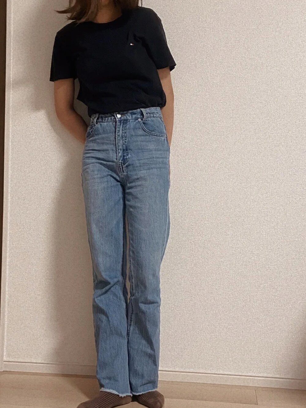 nonのデニムパンツ「【web限定アイテム】ハイウェストストレートデニム」を使ったコーディネート