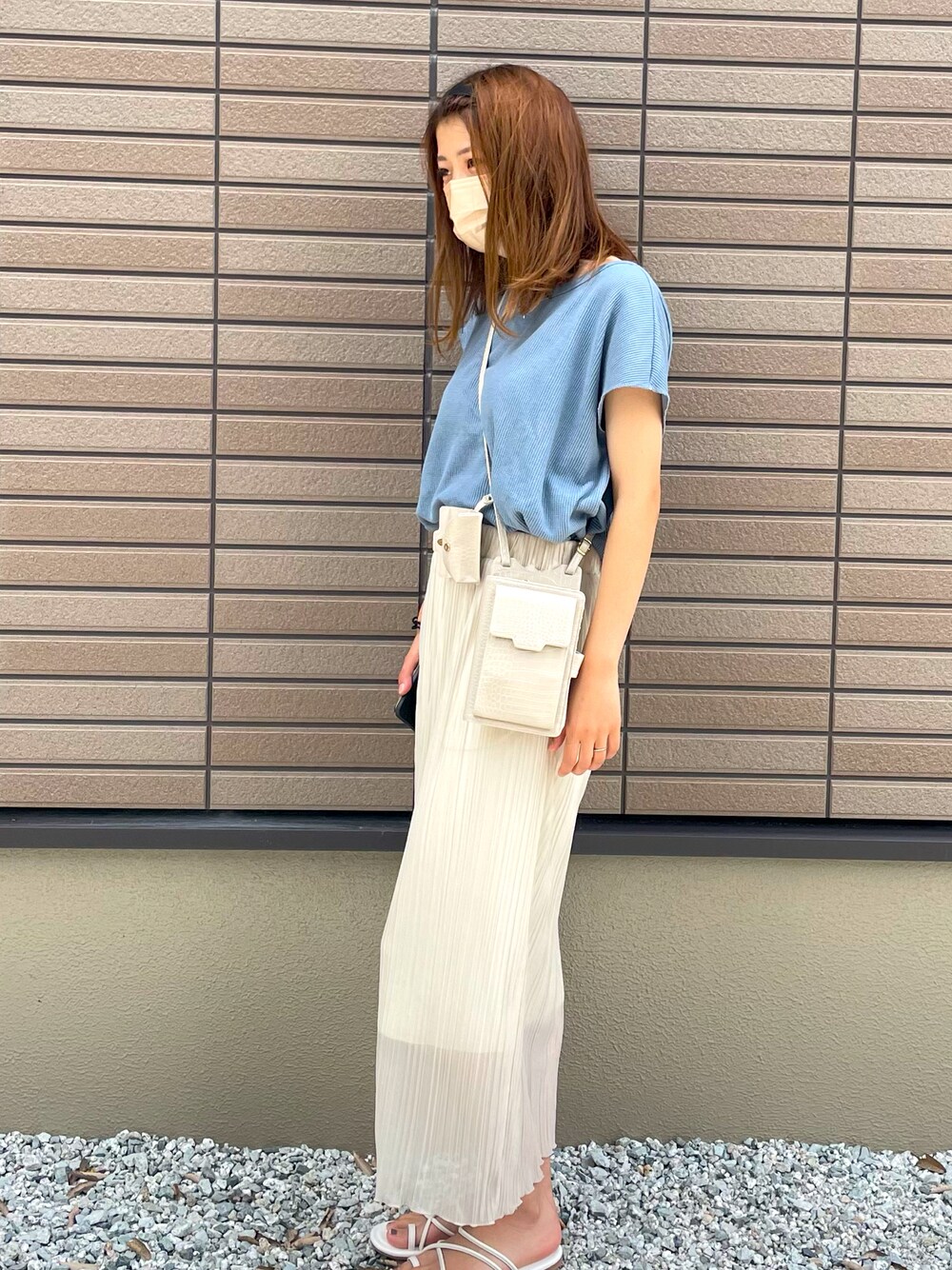 いつも見ていただきありがとうございます🫶🏼 夏コーデ🎐.* スカートの透け感が涼しい! ポシェット可愛すぎる💗