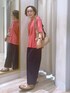 晩夏を意識したカラーリング。 少し柔らかさのある赤は、他にも茶色やカーキなど秋色と相性◎ 肌触りの良いトップスとシャリ感のあるパンツ、どちらも接触冷感なので、見た目以上に涼しい着心地です! 私の着用サイズ感* トップス…ちょうど パンツ…ちょうど 【体型カバーコーデ、毎日更新!】 Instagramと合わせて、ぜひフォローお願いいたします♡ 投稿がご参考いただけたら、 ↓こちら↓からカートに入れていただけると嬉しいです! お気に入り♡をタップで見返しもしてください♩