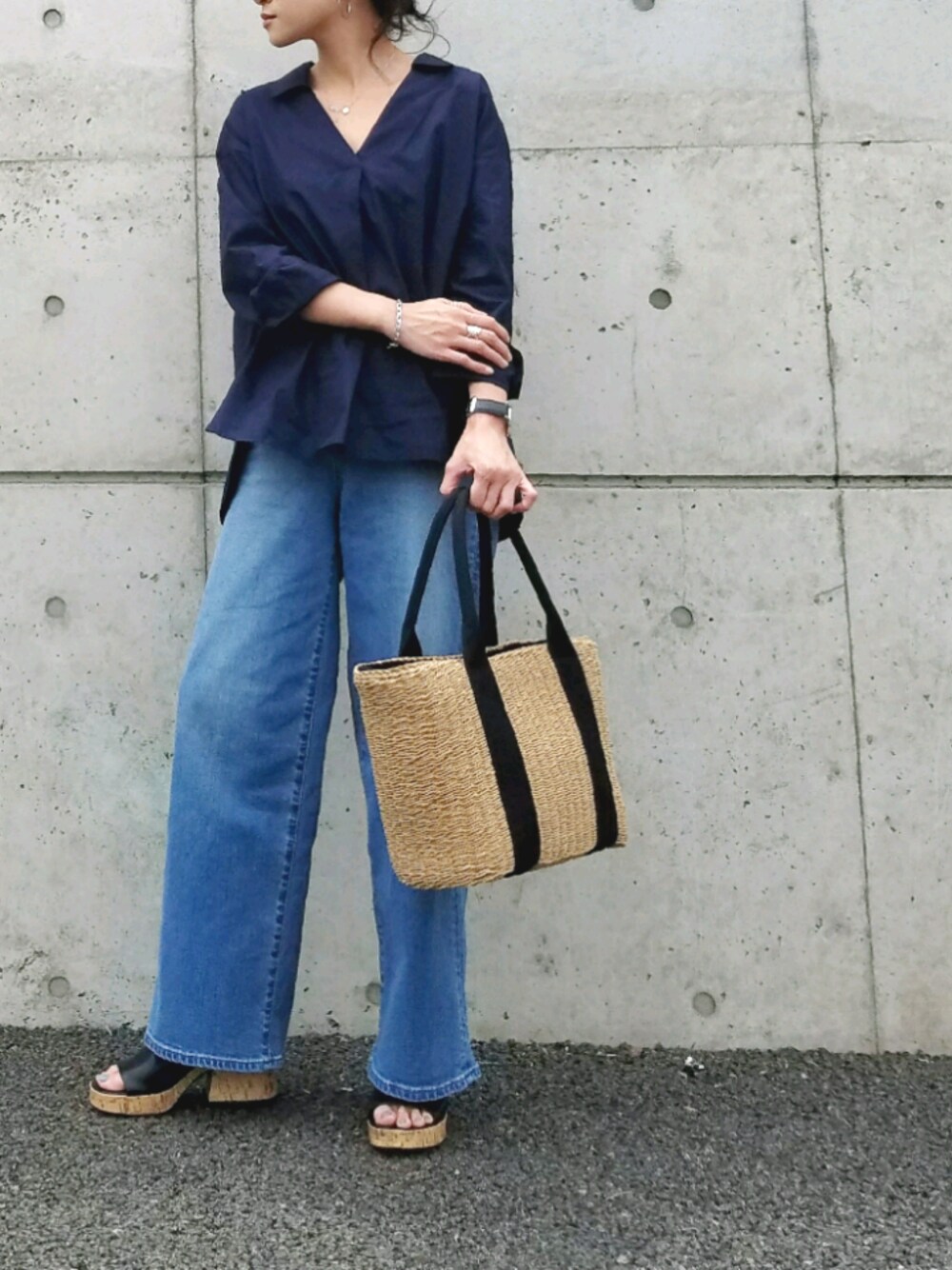 sashaのシャツ/ブラウス「Vネック スキッパーシャツ 長袖シャツ ブラウス」を使ったコーディネート