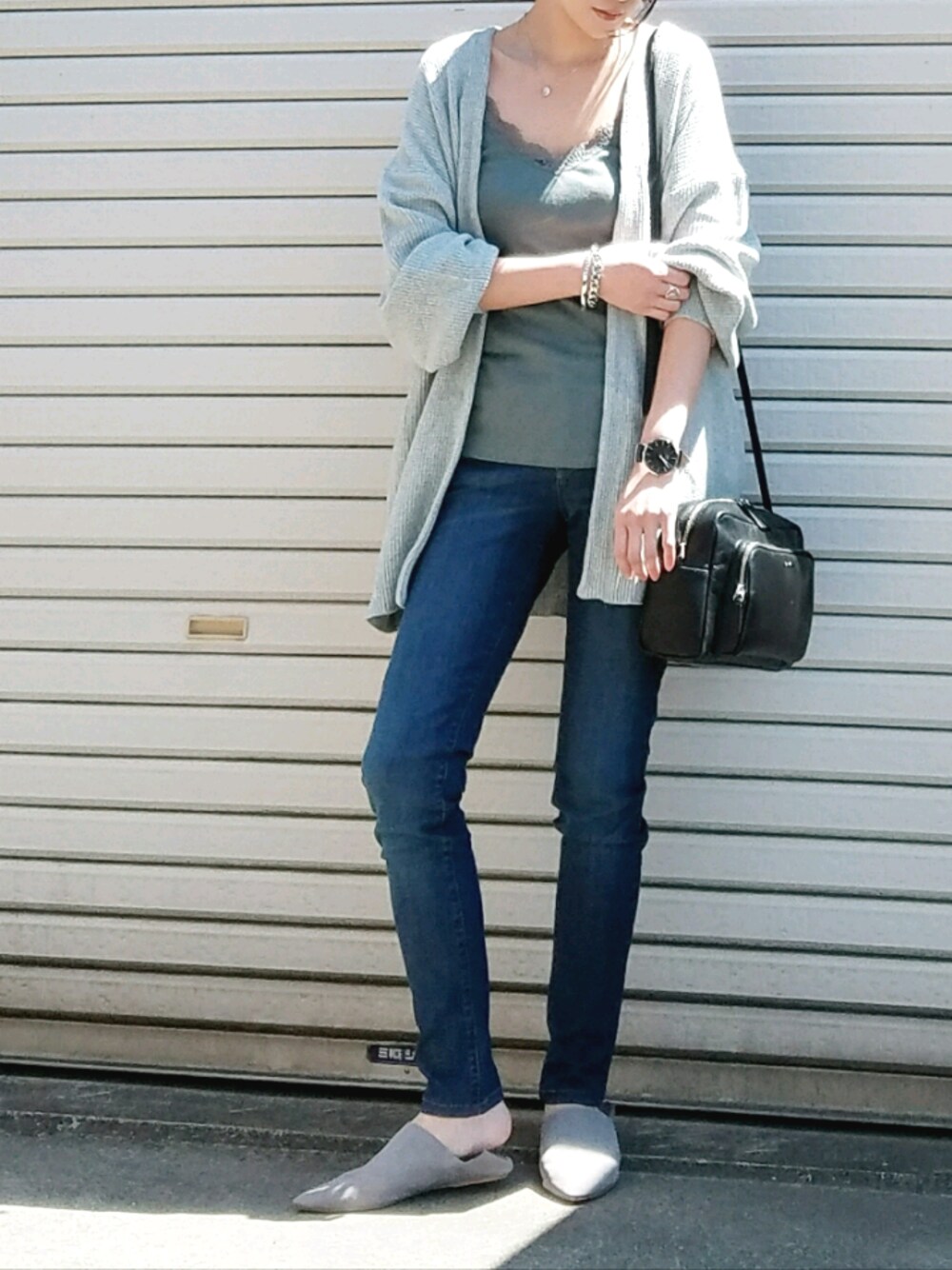 sashaのカーディガン/ボレロ「ソデBIGカーディガン 747785 」を使ったコーディネート