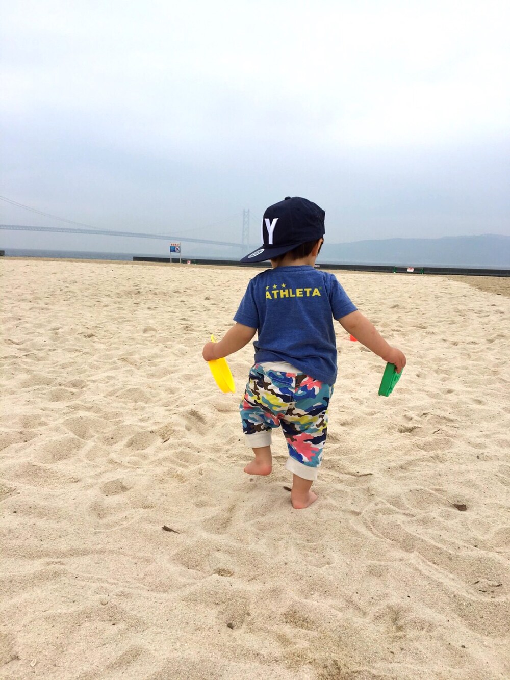 先日海に行った時の息子さん💕 砂浜が大好きで、いつまでもごきげん❤️❤️ 遊びまくる日のコーデです😎
