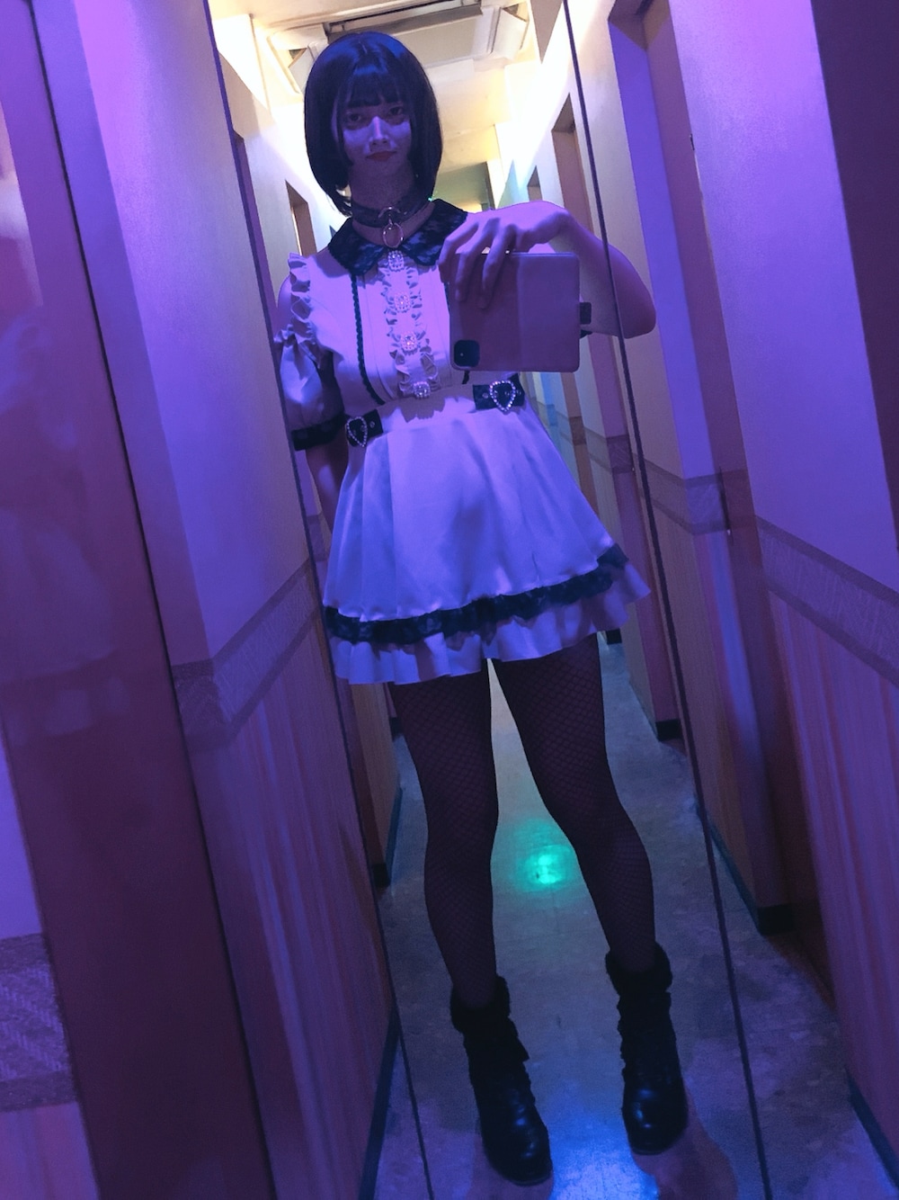 地雷系ワンピースの女の子感と網タイツのえろさを合わせました