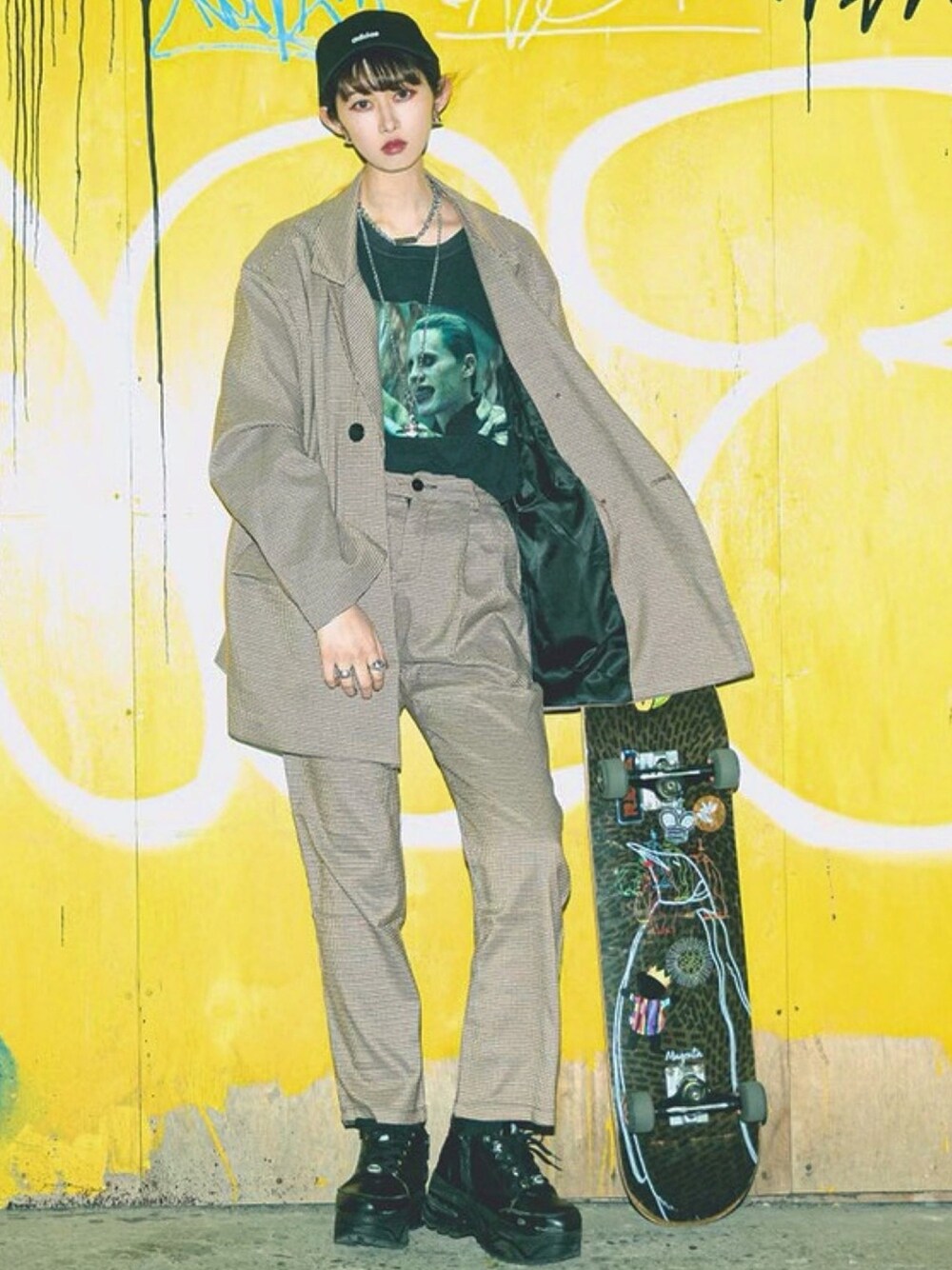 emのセットアップ「【neos -addictive design】ルーズシルエット ガンクラブ ギンガム レトロ チェック ダブル テーラード スラックス セットアップ」を使ったコーディネート