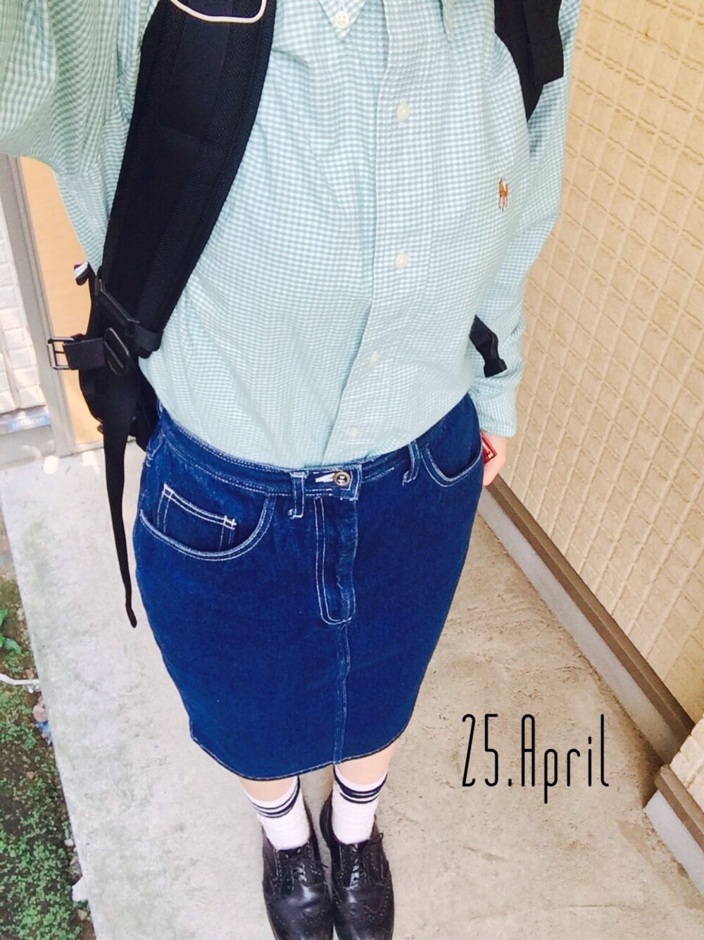 デニムのペンシルスカート ミントグリーンのギンガムチェックシャツ 古着です*\(^o^)/* 春!