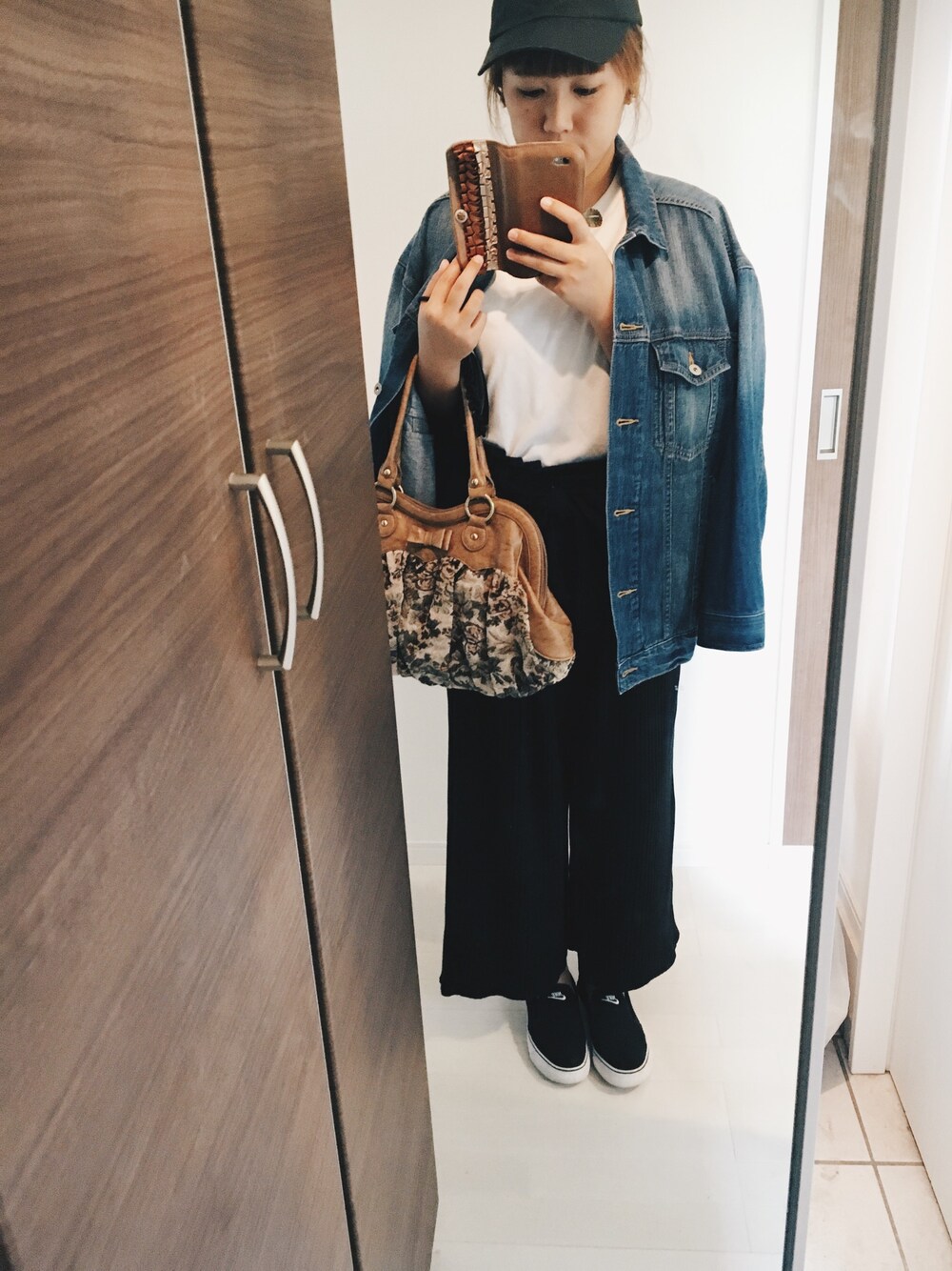 気付けば上下GU オーバーサイズデニムジャケット アンクルワイドリブパンツ