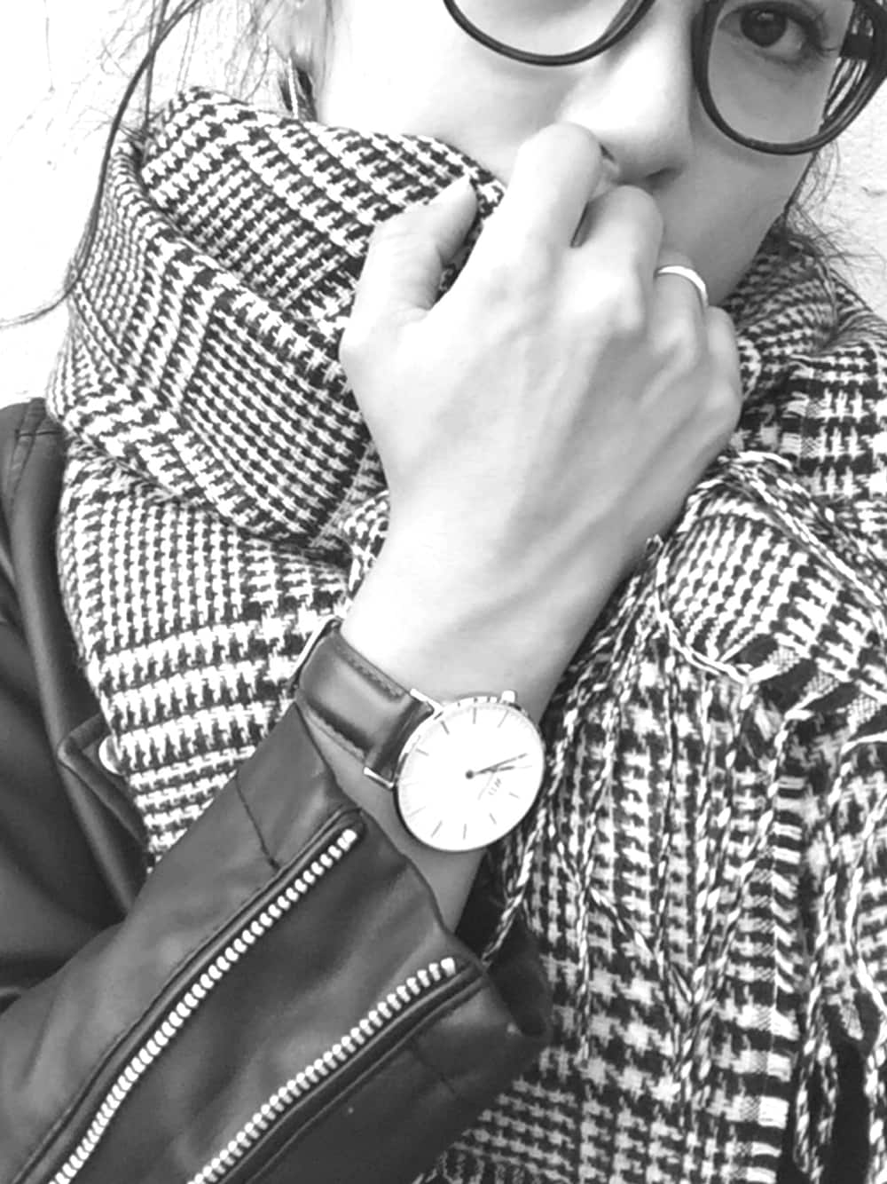 GU のグレンチェックストール、お安いのに肌触りいいし、柄がめっちゃ可愛い😍❤️ ライダース着て首にグルグル巻いてみたよ😎✨✨ 寒くなってきたらヘビロテしそう🙌💕💕