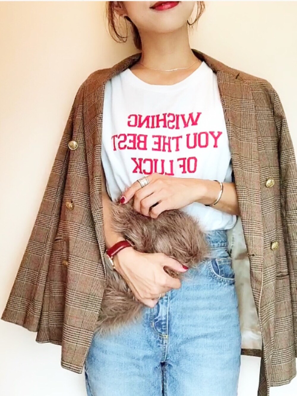 みなさん、台風は大丈夫やったかな?🌪💦 奈良も風が今まで以上に凄くて怖かったー😭 ニュースで大阪の被害見て心配です💦 これ以上被害が出ませんように、みなさんお気をつけ下さい🙇♀️ . 昨日のコーデなんだけど、赤ロゴTにチェックジャケット❤️ そして、さり気なくオシャレにしてくれる、 @eclat_3a のシルバーネックレス✨✨ とろみがあって、程よくキラキラしてる華奢なネックレスはどんなコーデにも合いそう🤤❤️ .