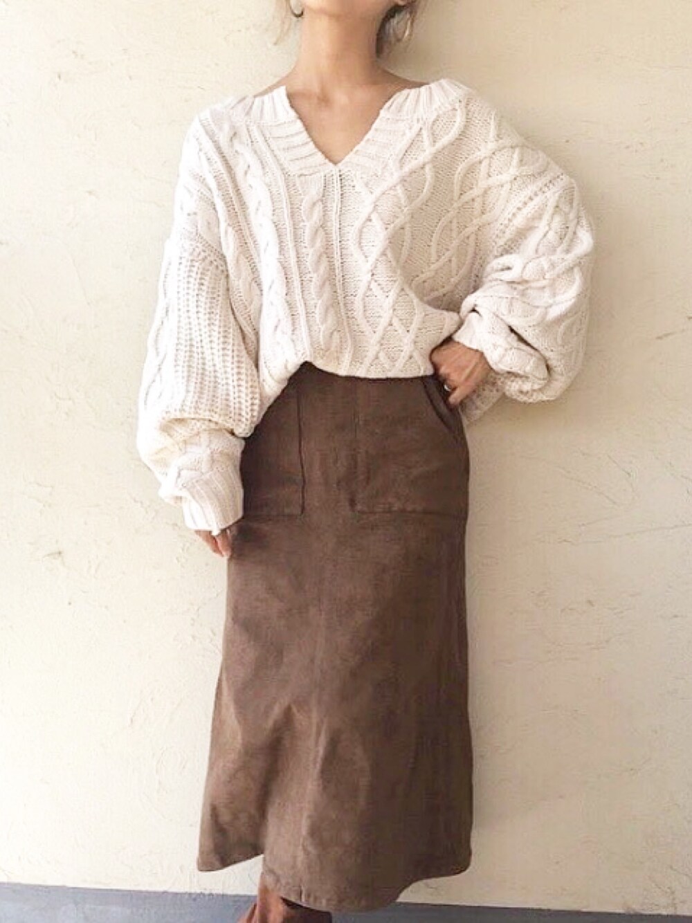 emiko☆のニット/セーター「ケーブル編みキーネックニットプルオーバー」を使ったコーディネート