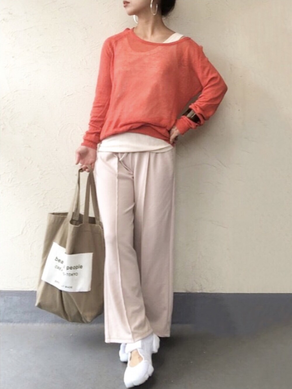 オレンジ×アイボリー🍊🐏 . 綺麗なオレンジのシアーニットは、フリマアプリてめーっちゃお安く買えました♡ . この @reca.yahoo のリラックスパンツ最近よく履いてる♡ 楽ちんなのに、センタープレスのおかげでラフすぎず、お気に入りのパンツ🤤♡