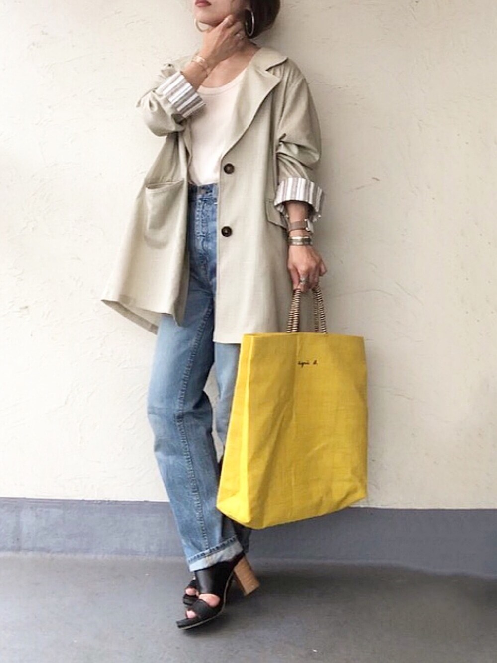 @koh.style のリネンジャケット♡ . リネン素材でオーバーサイズだから、風を通して夏でも快適に羽織れるよ🧥✨ . ストライプ の折り返しがポイントでオシャレ♡