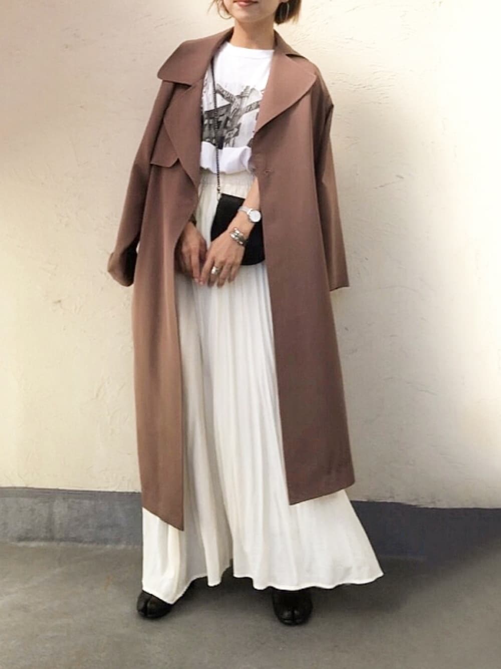 emiko☆のトレンチコート「[洗える]エアーストレッチオーバーチェスターコート【大きいサイズ対応】」を使ったコーディネート
