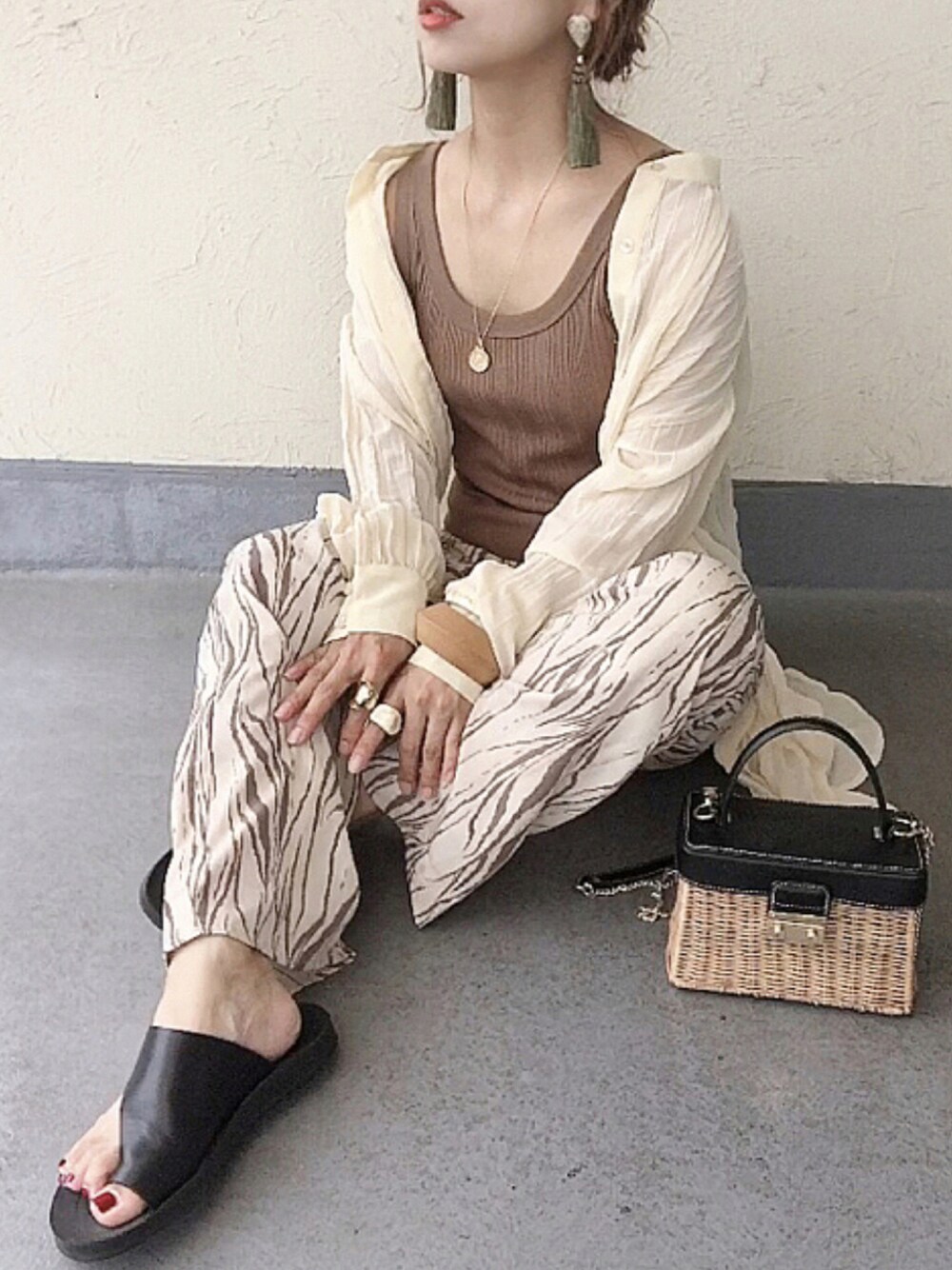 . #淡色女子 コーデ🐏🤎 絶対欲しかったゼブラ柄のパンツ🦓♡♡♡ この優しい色ベージュ×ブラウンのゼブラ柄がニュアンスたっぷりで、もぉめっちゃ可愛い😮💨♡♡ 裏地も付いてて、ウエストゴムで楽ちんなパンツ✨ @select.shop.jbg のです🙌♡