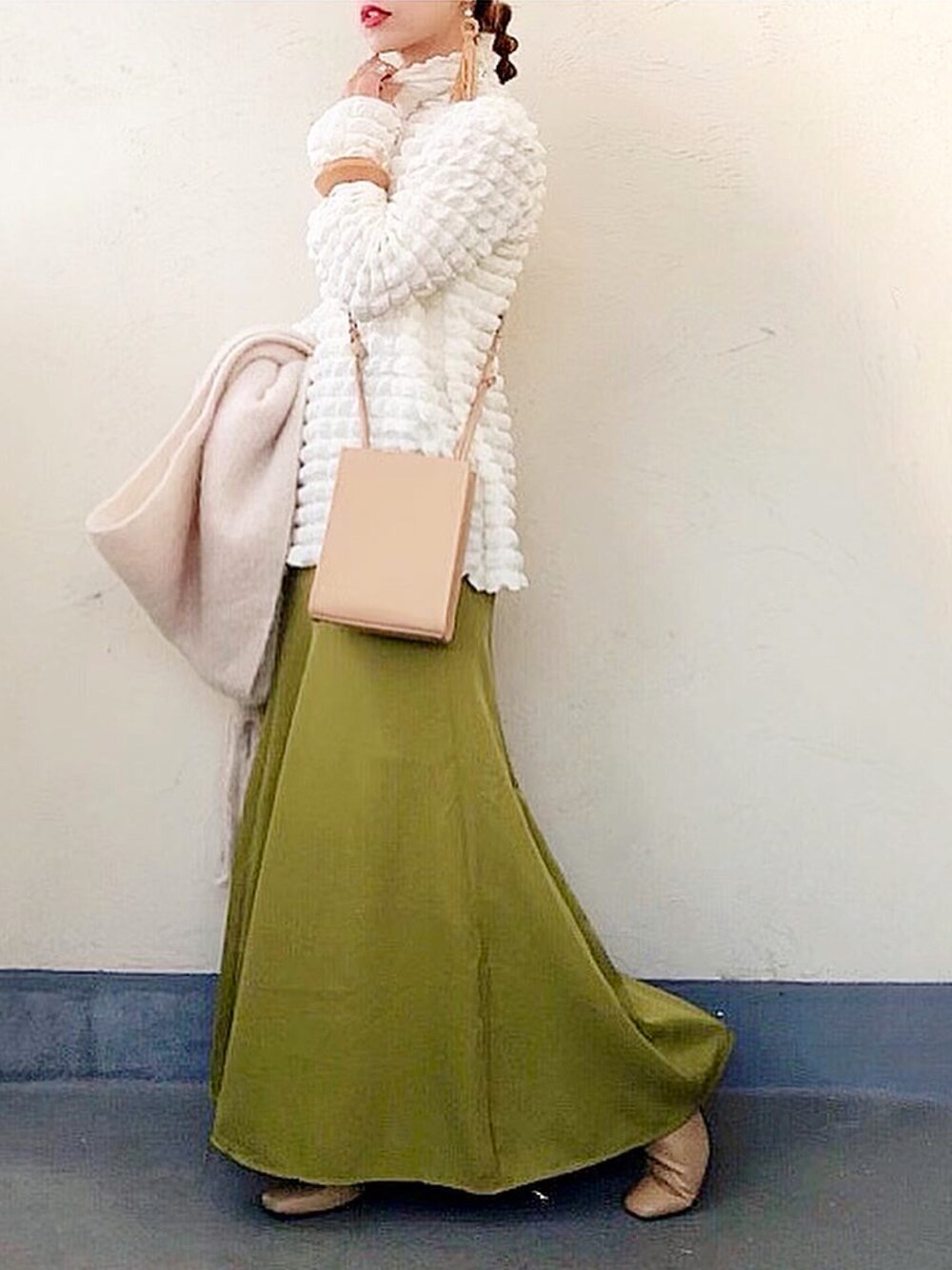 ポップコーン🍿みたいなポコポコした表情が可愛い @eimee_law_official のハイネックトップス♡♡♡ 収縮性のある生地で、柔らかくフィットしてくれるよ🤤♡ 綺麗なカラーのボトムと相性良し👌💚