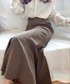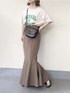 . シルエットがすっごく綺麗な @junoah_official のスリットマーメイドスカート♡ 大人っぽいスカートをTシャツでカジュアルに着るのが好き💋 薄手で伸縮性がある生地だから窮屈感がないし、後ろはゴムになってるからトップスをINしてもスッキリ履ける♡ さり気なくスリットが入ってるのも素敵🫶