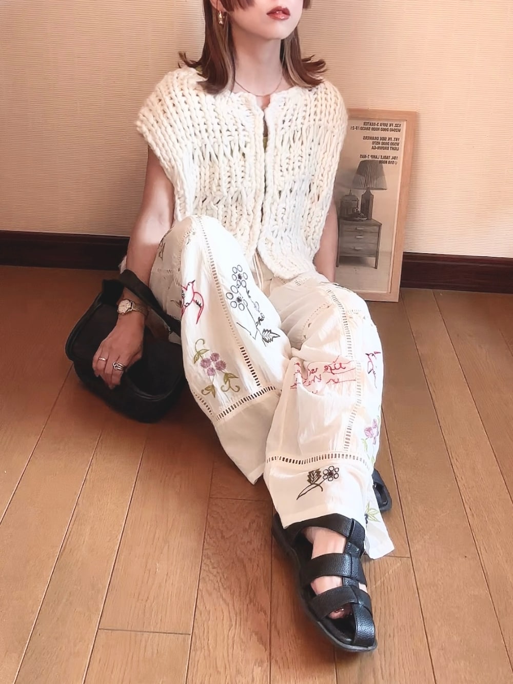emiko☆のベスト「ハンドニットロービングベスト」を使ったコーディネート