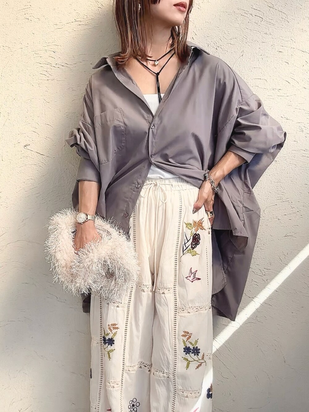 ドルマンビッグシャツがこなれ感があって大人可愛い♡