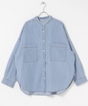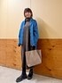 ニットワンピースはふくらはぎよりも少し下の丈感です。タートルネックはゆったりしているので、小顔に見えます。 デニムシャツは柔らかく、ボタンが一番上以外はスナップになっています。