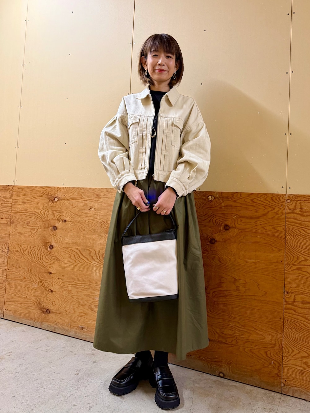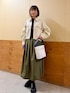✔︎ブルゾンは厚手の素材感ですが、丈も程よく背中がふんわりしているので、可愛らしくいていただけます。 ✔︎ブルゾンが厚手なので、インには薄手のシアーなシャツを持ってきました。 ✔︎ふんわりしたスカートは、裏地付きなので助けたりする心配もありません。