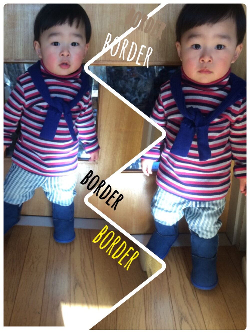 今日はborder、ストライプ、タテヨコがらがら (゚ロ゚*)ノブーツがでっかい!
